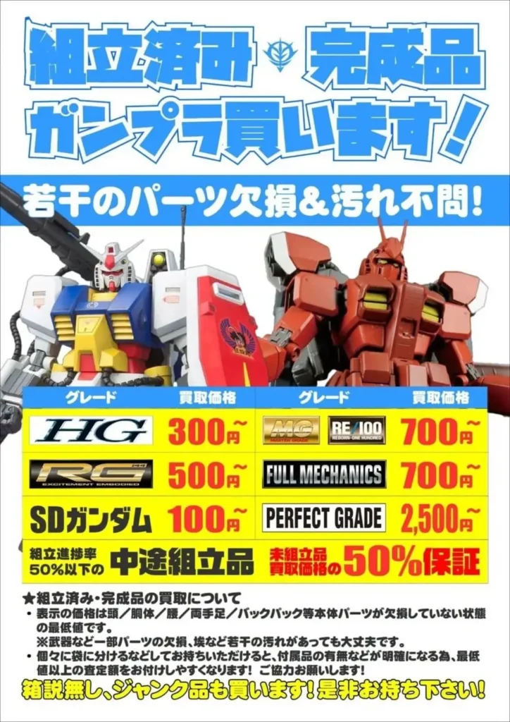 組立済みや中途組立品でも買取してくれる数少ない店舗。
