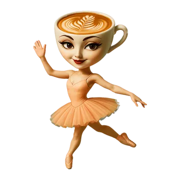 カプチーノカップを頭に載せた優雅なバレリーナ。